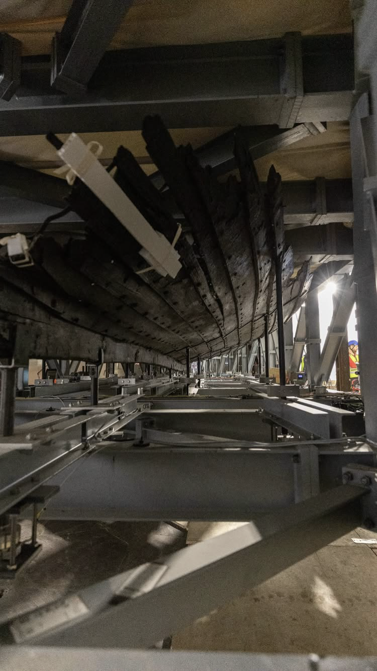 Op de kanalen van het museum (bijvoorbeeld op hun Instagramaccount, @vikingtidsmuseet) verschijnen regelmatig updates, maar ze hadden aangekondigd de verplaatsing van de Oseberg live te zullen uitzenden op 11 september 2025. Ik vind het leuk dat ze dit doen, want het is natuurlijk super interessant om te zien hoe dat in zijn werk gaat (en normaal krijgen bezoekers hier niets van te zien). Uiteraard was ik zelf ook benieuwd. Ik kon niet alles direct volgen omdat ik voor de klas stond, maar ik heb wel veel kunnen terugkijken op YouTube en via stories en reels.